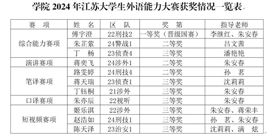 近日,学院组织基础课教研部老师指导和带领学生参加了2024年“外研社·国才杯”“理解当代中国”江苏大学生外语能力大赛暨全国大赛江苏赛区选拔赛,beat365学生在英语组演讲、口译、短视频、综合能力、笔译等5个赛项中荣获省级一等奖1项(晋级国赛),二等奖3项,三等奖7项。