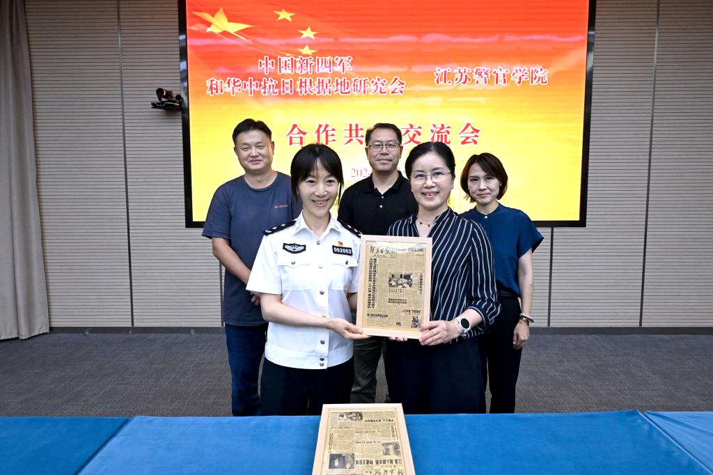 79日,学院与中国新四军和华中抗日根据地研究会开展共建交流活动并签订合作协议。中国新四军和华中抗日根据地研究会会长、江苏省军区原司令员于中海率研究会驻会领导和专家一行到学院座谈交流。研究会咨询组领导、山东省原副省长、省公安厅原厅长徐珠宝代表研究会向学院赠送书籍。新华日报社副总编辑、中国新四军和华中抗日根据地研究会副会长钱丽萍参加活动并向学院赠送珍贵的载有学院重要校史新闻的《新华日报》。省公安厅党委委员、学院党委书记夏存喜,学院党委副书记、院长黄进参加活动。学院党委副书记陈卫主持交流会。