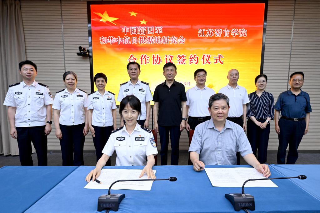 双方签订合作协议,坚持以习近平新时代中国特色社会主义思想为指导,深入学习贯彻习近平总书记参观新四军纪念馆重要讲话精神,大力弘扬忠诚文化、法治文化、英雄文化、纪律文化,在共建成立公安铁军研究中心,开设党史、军史和人民公安史特色课程,推出新四军和铁军精神历史展览、组织革命传统教育和爱国主义教育主题研学活动、建设铁军精神实践教育基地、创作公安铁军文艺精品、打造公安铁军宣讲队伍、设置公安铁军研究和公安铁军风采等专栏专版等8个方面加强合作,努力锻造新时代公安铁军。同时,在加强组织领导、协同育人、绩效评估方面达成共识,今后将进一步深化交流合作、携手共建共享,搭建教育平台、建立育人机制,推进中新会同志和警院师生、公安机关在职民警的全方位合作,不断提高专业型实战型公安后备人才培养质量。