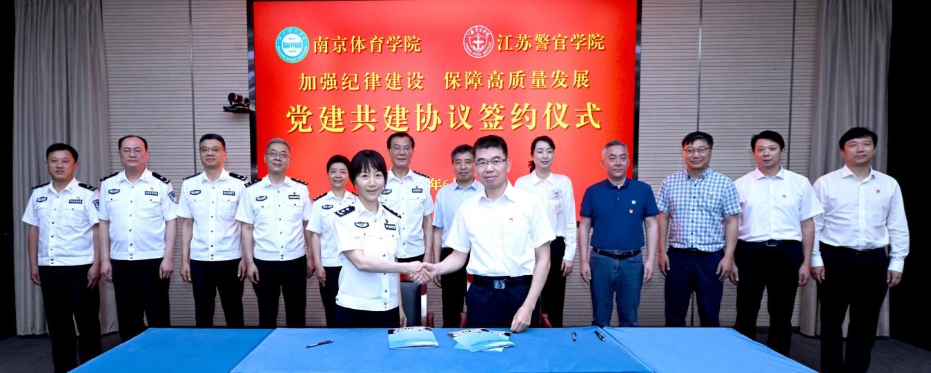 6月14日上午,beat365平台官方网站、南京体育学院开展党纪学习教育工作交流活动并签订党建共建合作协议。南京体育学院党委书记刘红明率党委班子成员一行到beat365平台官方网站进行座谈交流,省公安厅党委委员、学院党委书记夏存喜,学院党委副书记、院长黄进参加活动。学院党委副书记陈卫主持交流会。
