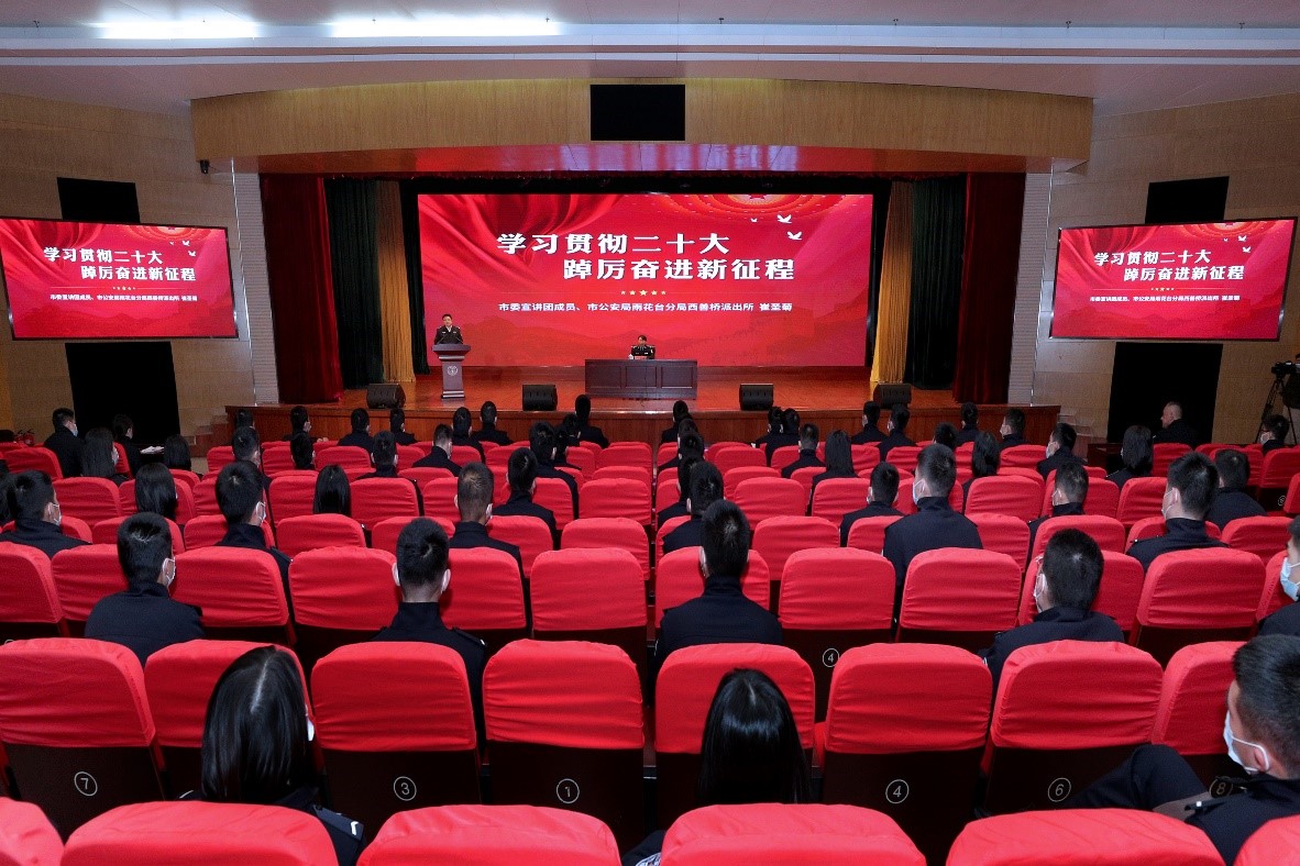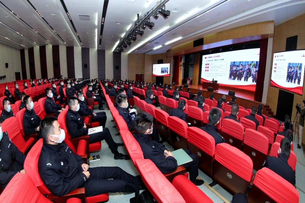 崔圣菊说,党的二十大报告具有丰富的文字内涵和无尽的阐释魅力,在思想高度、历史深度、空间广度构成的立体坐标系内,有着无数的个人、群体与这个伟大时代的交叉点。这其中必然有江苏公安肩负的责任,以及全体战友“舍小家、顾大家”为二十大安保付出的努力、作出的贡献。警院学子未来是江苏公安的新鲜血液,要在现代警务体系的宏伟蓝图绘制过程中,为自己、为警队、为国家书写出新故事、新篇章。
