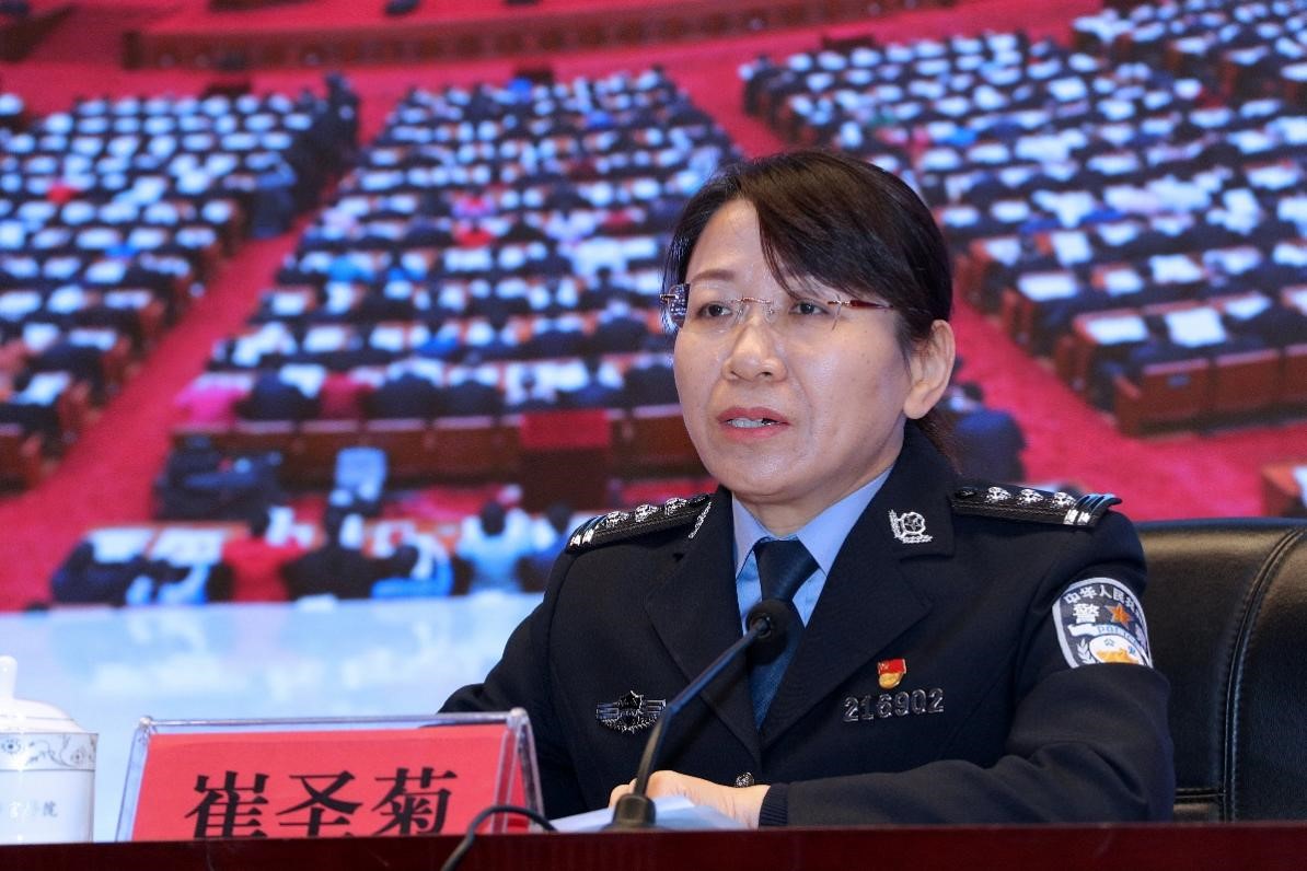 崔圣菊说,党的十八大以来,以习近平同志为核心的党中央高度重视公安工作,专门召开全国公安工作会议,印发加强新时代公安工作的意见,决定设立人民警察节,举行人民警察警旗授旗仪式,极大激发了我们铸警魂、守初心、担使命的奋进动力。我们必须捍卫“两个确立”、做到“两个维护”,字字千钧不忘嘱托;践行初心使命、勤政执法为民,念念于心乾乾于行;勇于担当作为、积极改革创新,时时践行再接再厉,始终在思想上政治上行动上同以习近平同志为核心的党中央保持高度一致,找准贯彻落实二十大精神的结合点、切入点、着力点,以中国式现代化推进江苏现代化建设新实践,更好“扛起新使命,谱写新篇章”,让党的二十大精神在公安工作中落地生根、开花结果。