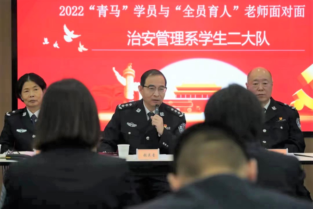 为深入贯彻落实立德树人根本任务,12月9日下午,学院党委副书记、院长张兰青到忠诚警魂教育中心,参加“青马”学员与全员育人老师面对面活动,现场听取治安管理系学生二大队年度工作报告和“青马”学员代表发言,并与学员们亲切互动交流、释疑解惑,勉励学员们争做堪当民族复兴重任的时代新人。