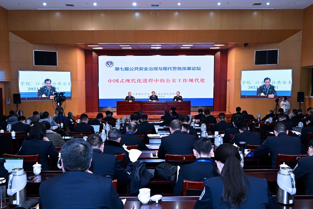 南京市公安局党委副书记、常务副局长王秉德围绕“纵深推进现代警务战略,构建‘市县主战、派出所主防’实战化职能体系”,扬州市副市长、公安局局长盛卫中围绕“重大风险感知防控体系建设探究”,镇江市副市长、公安局局长王文生围绕“长江水域安全治理”,南京大学智库研究与评价中心主任、首席专家、南京大学信息管理学院教授李刚围绕“ChatGPT对未来警务的挑战”,中国人民公安大学国家安全学院副院长、教授李丽华围绕“以二十大精神引领中国式国家安全学的建设与发展”,江苏大学法学院院长、教授李炳烁围绕“我国社会矛盾发展的总体态势与国家安全”,江苏省公共安全研究院研究员薛宏伟围绕“构建实战化职能体系的成功探索——以打击治理电信网络诈骗实践为例”,苏州市警察协会会长张跃进围绕“警务现代化基本范畴及其实践路径研究”,分别作专题演讲。部分论文作者作交流发言。