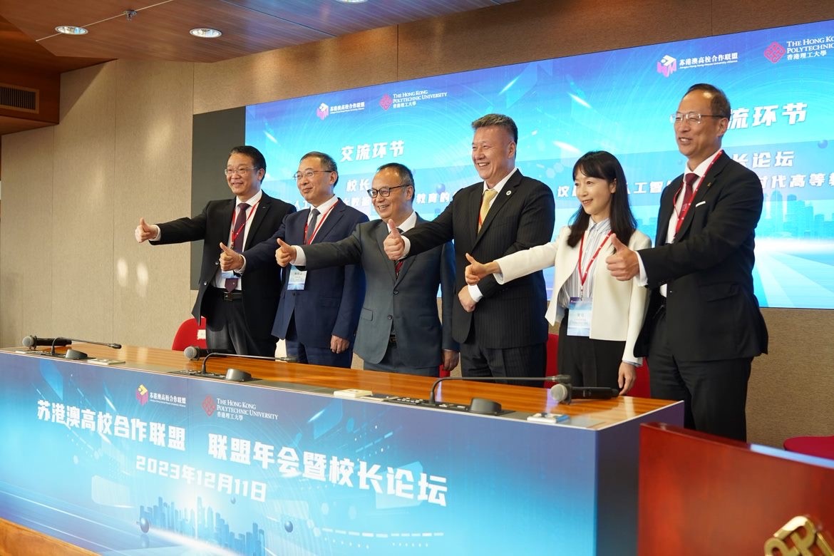 12月11日,来自38所成员高校的130位校领导及代表参加了苏港澳高校合作联盟年会暨校长论坛。开幕式上,香港理工大学校长滕锦光致欢迎辞。教育部国际合作与交流司司长、港澳台办公室主任刘锦,江苏省教育厅厅长江涌,香港特别行政区政府教育局局长蔡若莲,澳门特别行政区政府教育及青年发展局副局长丁少雄先后致辞。