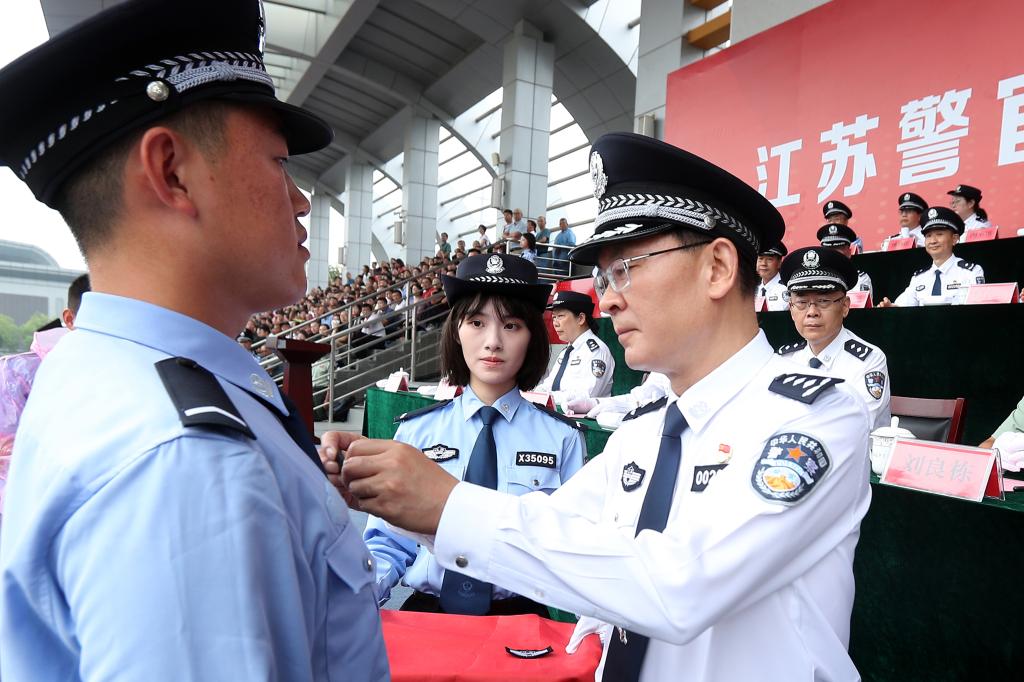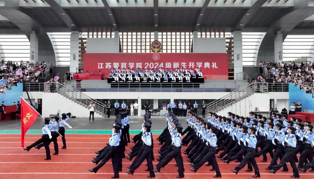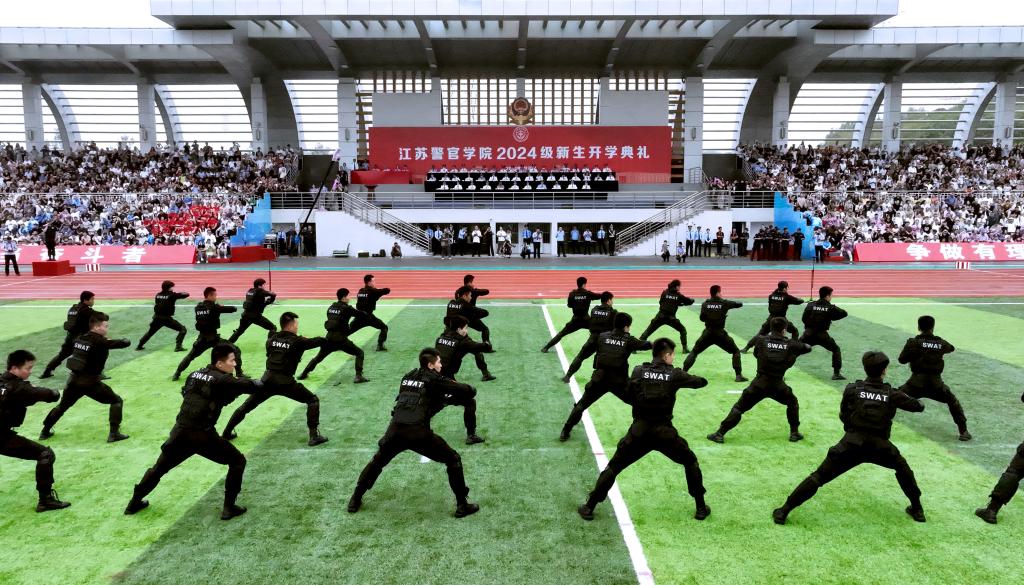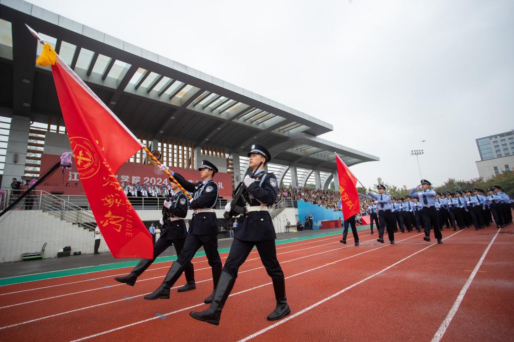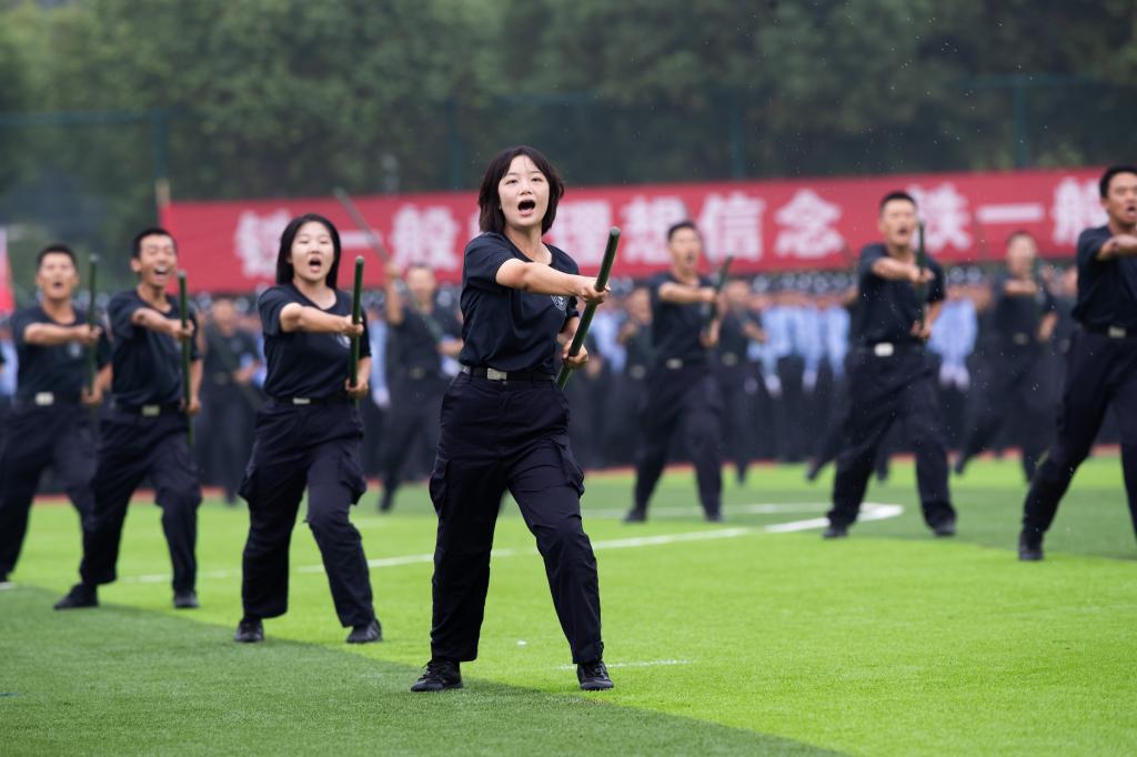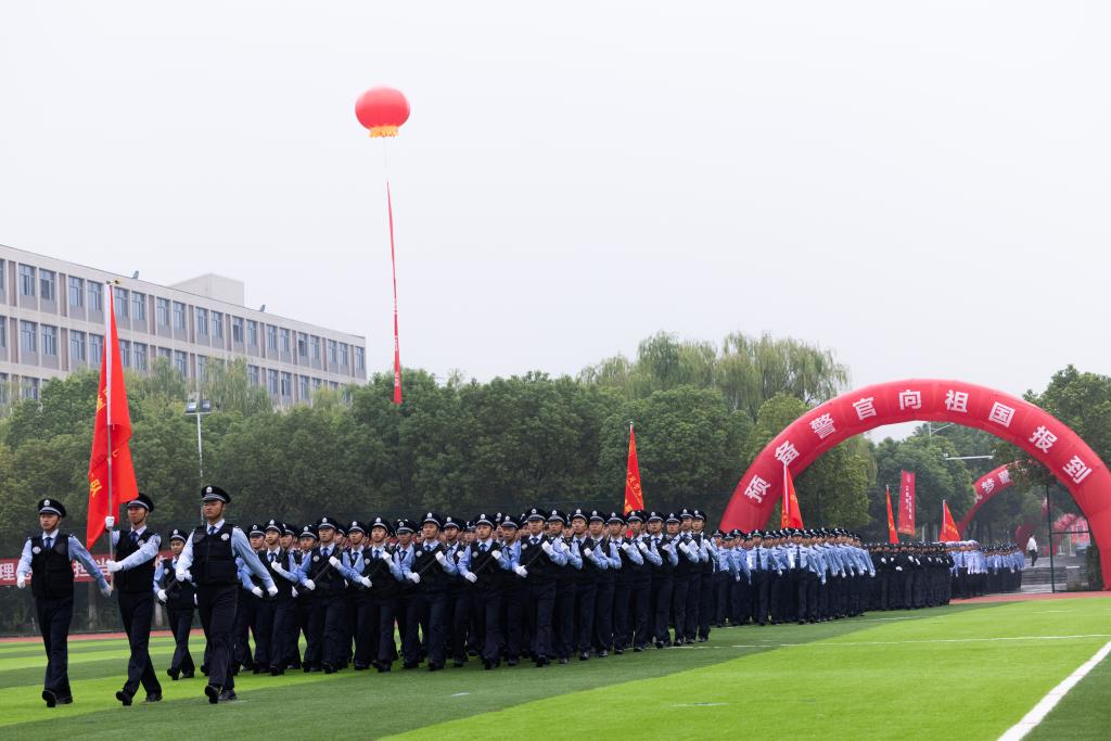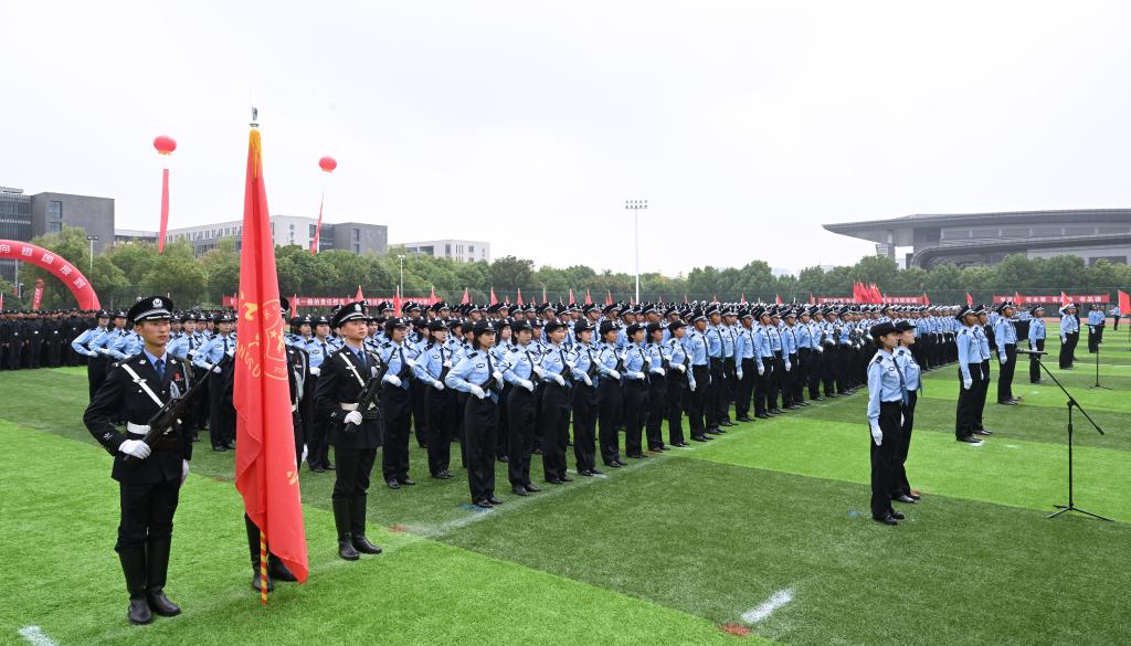 请党放心,强国有我。新生代表诗朗诵《预备警官向祖国报到》、全体新生合唱《歌唱祖国》将典礼气氛推向高潮。