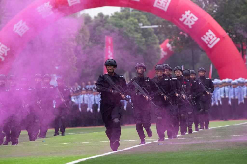 英姿飒爽,步履铿锵。在新生警训成果汇报表演环节,全体新生共同展示了分列式和多科目警务实战技能训练成果。