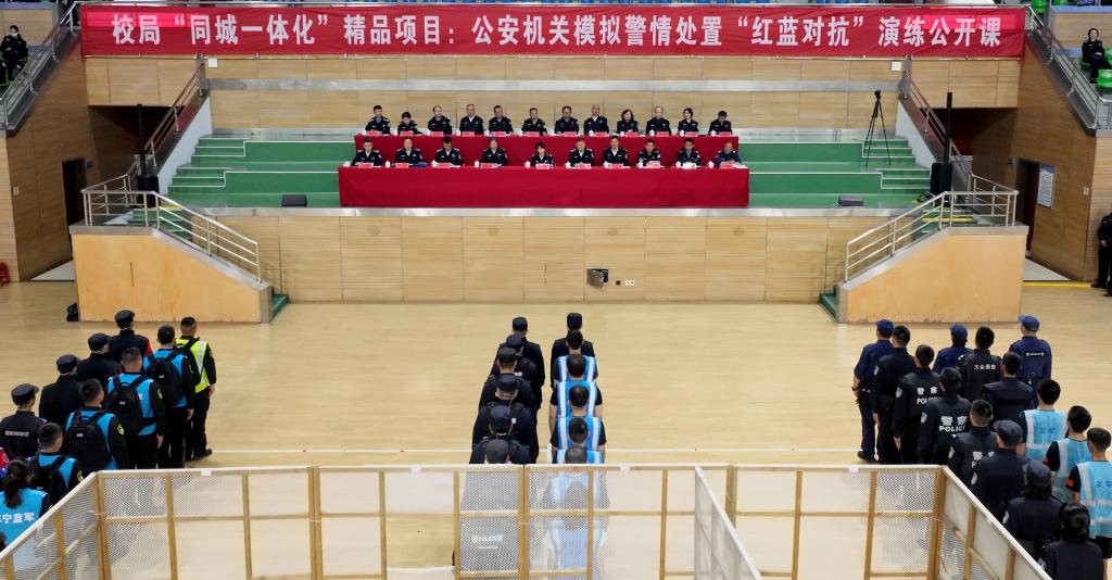 4月26日下午,学院与南京市公安局在浦口校区警体馆共同举办校局“同城一体化”精品项目:公安机关模拟警情处置“红蓝对抗”演练公开课活动。学院党委副书记、院长黄进致开幕词,学院党委委员、副院长刘蔚文主持活动并讲话,山东警察学院党委委员、副院长李亦农出席活动。