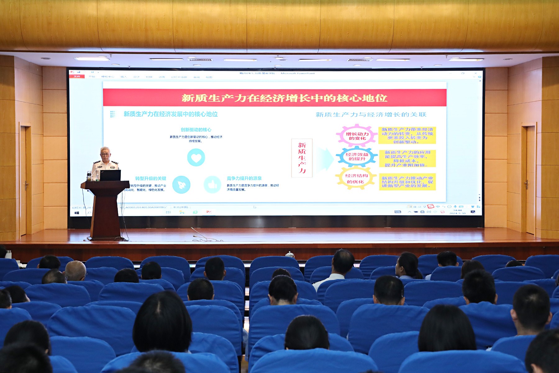 周景山研究员从“如何认识新质生产力、为什么要发展新质生产力、怎么发展新质生产力和新质战斗力”三个方面系统阐述了新质生产力的内涵和主要特点,在比较新质生产力与新质战斗力的基础上,对我国当前在科技竞争中面临的形势进行全面分析,提出提升新时代新质公安战斗力的主要路径。本次报告会数据详实,科学严谨,有助于学院师生进一步深刻理解新质生产力科学内涵,进一步加强公安科技创新,服务提升新质公安战斗力。