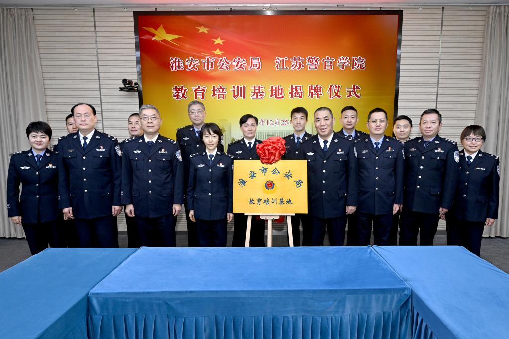 淮安市公安局政治部实训处负责同志,学院干训部、研究生教育部负责人参加揭牌仪式。