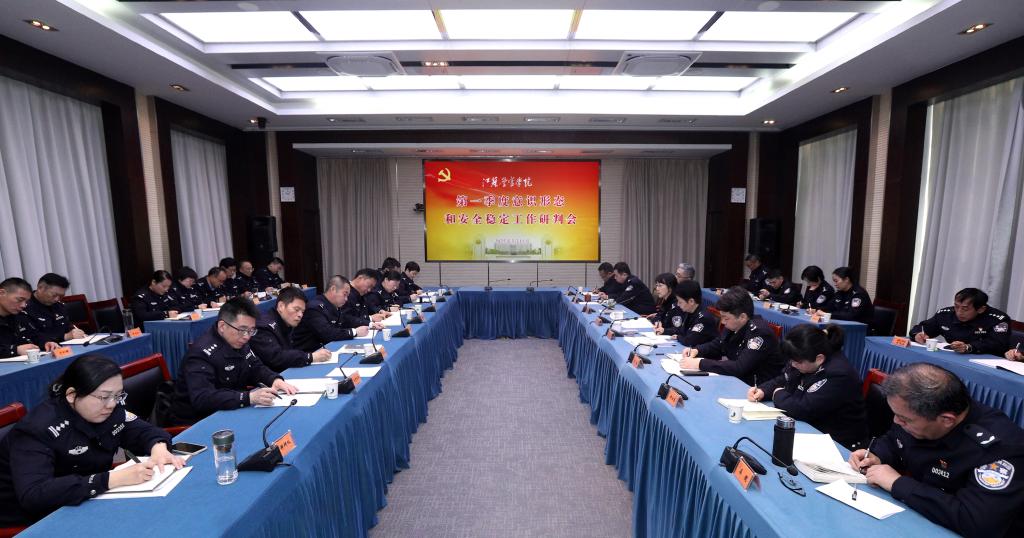 黄进指出,要深入学习贯彻习近平总书记在中共中央政治局第十九次集体学习、参加十四届全国人大三次会议江苏代表团审议、看望参加政协会议的民盟民进教育界委员时的重要讲话精神,深入学习贯彻总体国家安全观,以更高站位、更实举措、更强担当,筑牢校园安全防线,为学院内涵式特色化高质量发展提供坚实保障。一要充分认识做好意识形态和安全稳定工作的重要意义,深刻领会总体国家安全观的战略指引,准确把握意识形态领域斗争的复杂形势,认真审视安全稳定工作的风险挑战,切实增强政治自觉、思想自觉、行动自觉。二要组织开展意识形态“强基”行动,统筹实施忠诚强基、提优强基、培元强基、文化强基、制度强基、淬火强基等六项行动,扎实推进省委巡视及落实意识形态工作责任制情况专项检查反馈意见整改落实,构建完善意识形态风险预警、研判、管控、反馈全流程机制,牢牢掌握意识形态工作的领导权、管理权、话语权。三要全力防范化解风险隐患,抓好校园安全专项整治,夯实基础工作,落实工作责任,认真开展韧性校园理论研究和实践活动,探索推进“专业+机制+大数据”校园安全稳定新模式,实施一批“人防、技防、工程防、管理防”措施,切实维护校园安全稳定,为培养新时代公安铁军提供坚实保障和有力支撑。
