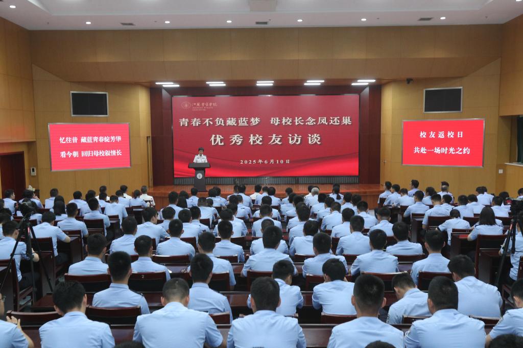 深深藏蓝梦,悠悠校友情。6月10日校庆日,正值毕业季,学院举办2025年“校友返校日”活动,传递母校深情牵挂,奏响青春校园与藏蓝警营的交响曲,让校友与即将毕业同学在传承与成长中畅谈从警故事与青春理想。学院党委副书记、院长黄进,学院党委副书记陈卫等在校院领导出席活动并与校友座谈,学院党委委员、副院长张敏主持相关活动。