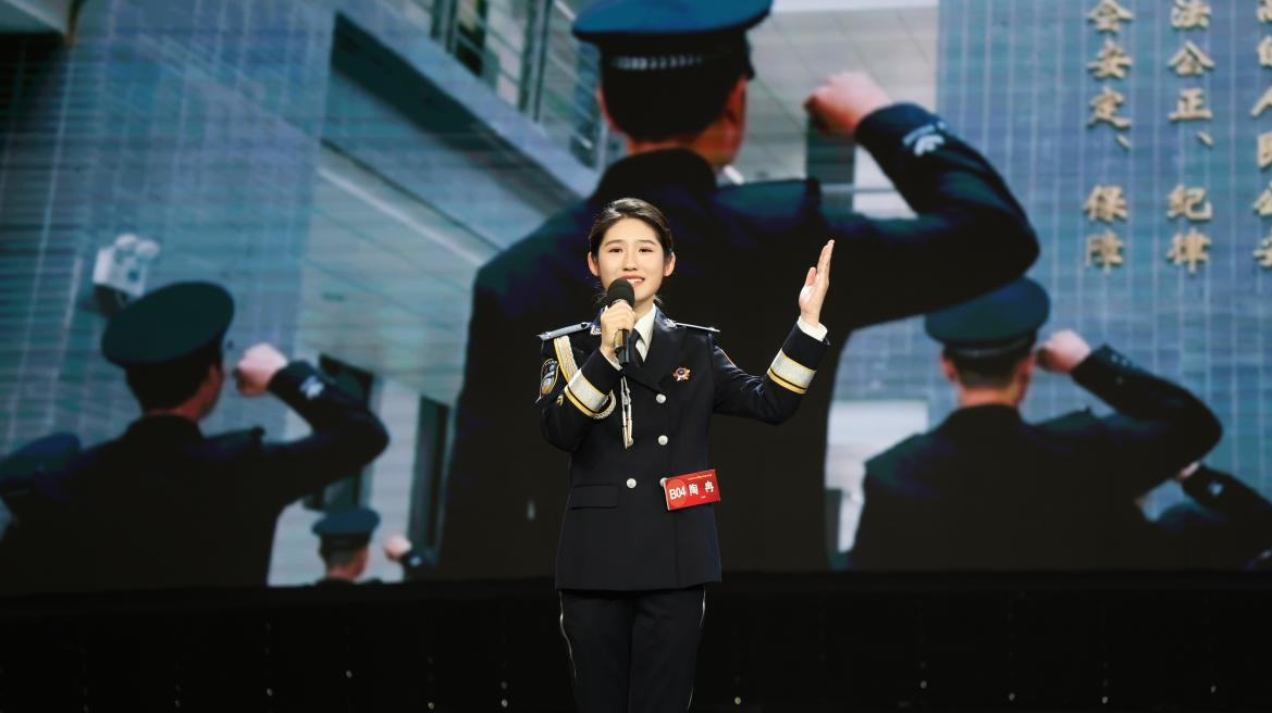 在省档案馆李婧老师、beat365学生处程亚萍老师指导下,陶冉同学以《一枚弹壳》为题,讲述了兵器制造专家吴运铎用血肉铸就兵工传奇的故事,从抗战时期兵工人“把一切献给党”的铮铮誓言,到新时代公安干警用热血与生命守护平安的生动实践,该故事生动展现了红色基因在警徽下的代代传承,获得现场评委和观众的热烈反响和一致好评。