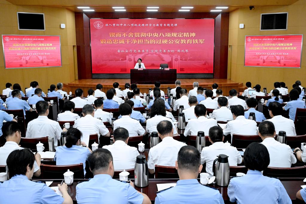 周凤琴指出,深入贯彻中央八项规定精神学习教育即将收官,要及时总结学习教育成效和经验,完善作风建设常态化长效化制度机制,在学有质量、查有力度、改有成效上持续深化,不断推动学院党的作风建设取得新成效,为推进江苏公安高等教育高质量发展提供坚强作风保障。