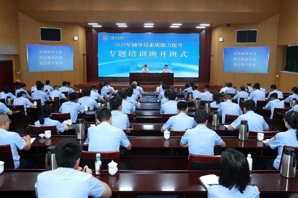 8月18日下午,学院举办2025年辅导员素质能力提升专题培训班开班式,省公安厅党委委员、学院党委书记周凤琴出席并讲话,强调辅导员是加强学生忠诚警魂教育和警务化管理的重要力量,要聚焦立德树人、育警铸剑根本任务,提升政治能力、增强专业素质、严明纪律作风,为赋能高质量人才培养、助力学校内涵式发展作出积极贡献。
