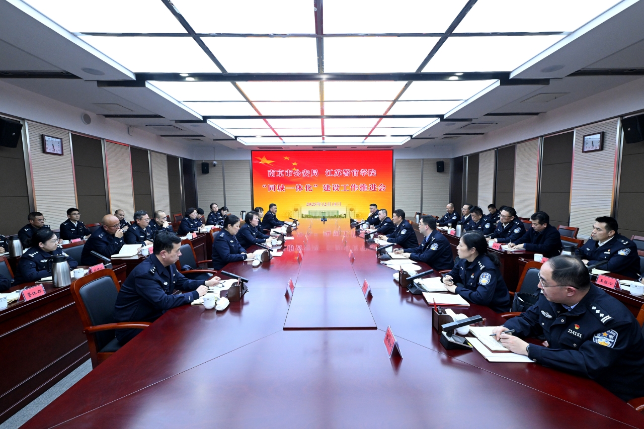 12月18日下午,学院与南京市公安局共同召开“同城一体化”建设工作推进会。省公安厅党委委员、学院党委书记周凤琴,南京市公安局党委委员、政治部主任仇文庆出席会议并讲话,学院党委副书记、院长黄进主持会议。