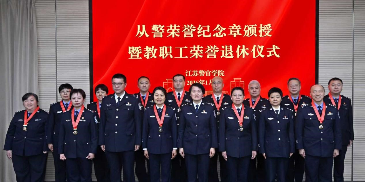 周凤琴强调,2026年是国家“十五五”规划开局之年,也是江苏公安高等教育高质量发展乘势而上、提档升级的关键一年,希望光荣退休的同志离岗不离党、退休不退责,一如既往关心学院发展,多提宝贵意见、多献务实之策,让江苏公安高等教育薪火相传。希望获颁纪念章的同志珍惜荣誉、再立新功,主动扛起学院发展的“中流砥柱”责任。希望学院全体师生见贤思齐、奋勇争先,以前辈为学习榜样,发扬“越是艰险越向前”的创新锐气,践行“致广大而尽精微”的实干担当,奋力推动江苏公安高等教育高质量发展走在前、作示范。