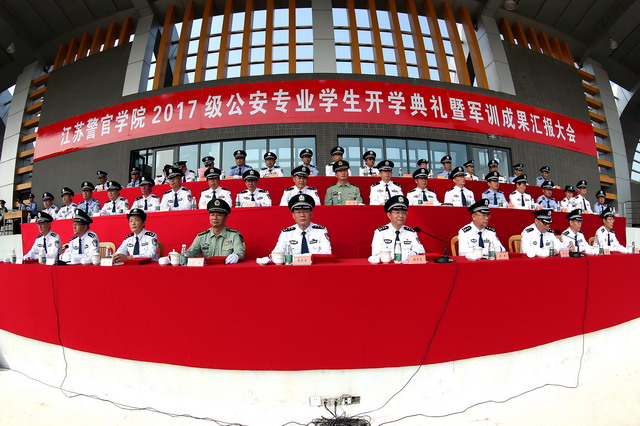 10月8日上午,学院举行2017级公安专业新生开学典礼暨军训汇报大会。省公安厅党委委员、学院党委书记夏存喜出席大会,并向承担beat365新生军训任务的中国人民解放军陆军工程大学野战工程学院赠送锦旗。学院党委副书记、院长张兰青深情寄语全体新生。中国人民解放军陆军工程大学野战工程学院严骏大校,beat365在校院领导张健、张霞、宋践、殷竹钧、薛宏伟、朱琨、王奎宏,各中层部门负责人,中国人民解放军陆军工程大学野战工程学院施训教官,部分学生家长及1230余名新生参加大会。