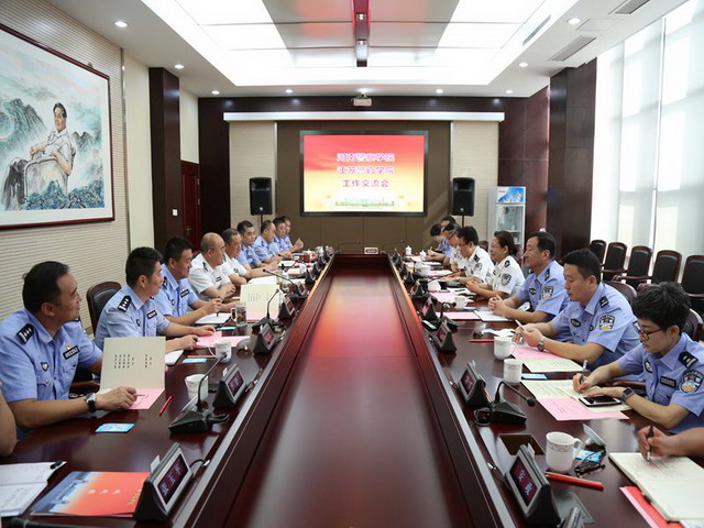 9月21日,河南警察学院党委委员、副院长徐晓慧率团来beat365考察交流。巡视员张健接待了河南警察学院考察团并与来宾进行了座谈。双方围绕公安机关面向公安院校公安专业毕业生考试录及毕业生综合积分排名办法、学生警务化管理、外出警务机制大型安保学警增援机制、校园文化特色、实战训练及社会实践等方面进行了探讨交流。