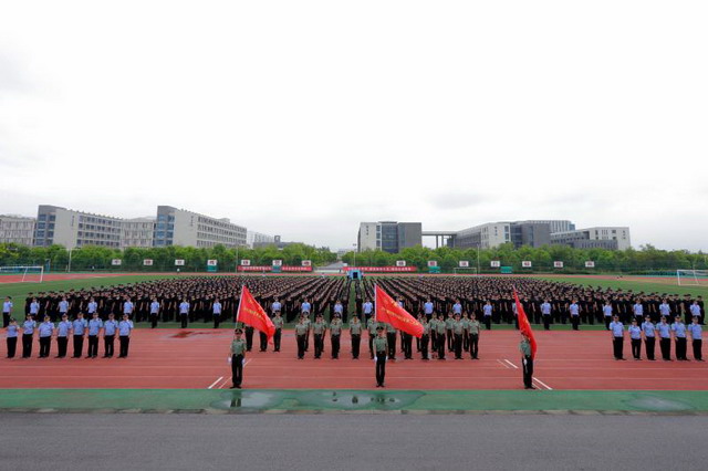 动员会结束后,全体新生在教官带领下迅速进入训练场地,开始为期30天的军事技能训练。