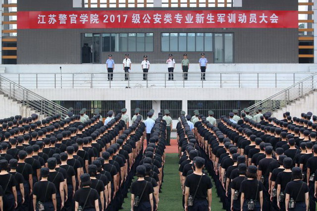 9月7日上午,学院在浦口校区田径场召开2017级公安类专业新生军训动员大会。巡视员张健出席会议并讲话。院警体部、学生处、团委负责人,驻训部队教官,全体新生管理干部、2015级学生小教员以及全体公安类专业新生参加动员会。