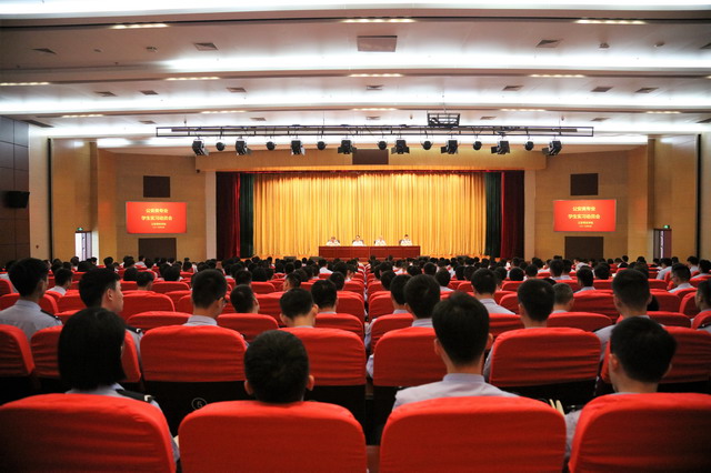 会议由教务处王智军处长主持;学生处常青处长详细介绍了实习工作总体安排,完整解读了实习方案、仔细强调了实习纪律和实习考核等。教务处实战化教学训练中心相关同志和学生处带队学管干部参加了会议。(图/文教务处)