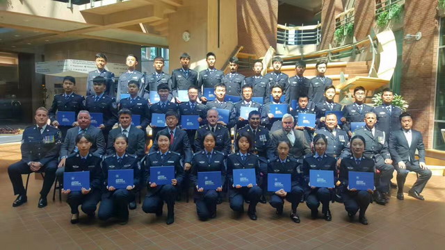 本期学分班共开设《治安管理》、《执法沟通技能》、《刑事案件侦查》、《加拿大司法制度》和《领导力培养》等5门课程,全程英文授课。授课教师均来自加拿大温哥华警务实战一线的警官,授课形式采取课堂教学与现场教学相结合,以课堂讲座为主,同时突出情景教学与实战化教学。期间,校方还专门组织学员实地考察温哥华新威斯敏斯特市警察局、温哥华战术训练中心、温哥华警马队训练中心等警察机构,切身体验感受了加拿大警务运作机制和理念。通过努力,22名学生均通过了5门课程考核,取得15个学分。