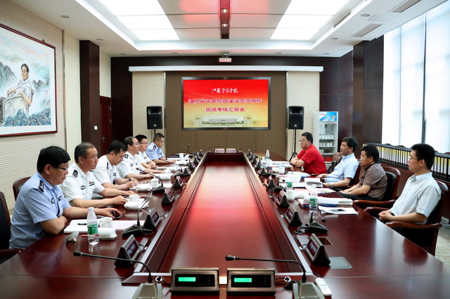 考核专家组观看了学院创建工作纪实专题片《决胜第一防线》,听取了殷竹钧副院长所作题为《高标定位,高点谋划,高效推进,聚力打造一流平安校园》的创建工作情况汇报,仔细查阅了学院创建工作资料台帐,实地察看了射击馆、枪械发展史博物馆、校园安全监控中心、校园警务室、微型消防站、学生食堂等场所,并在师生中随机进行了创建情况问卷调查。