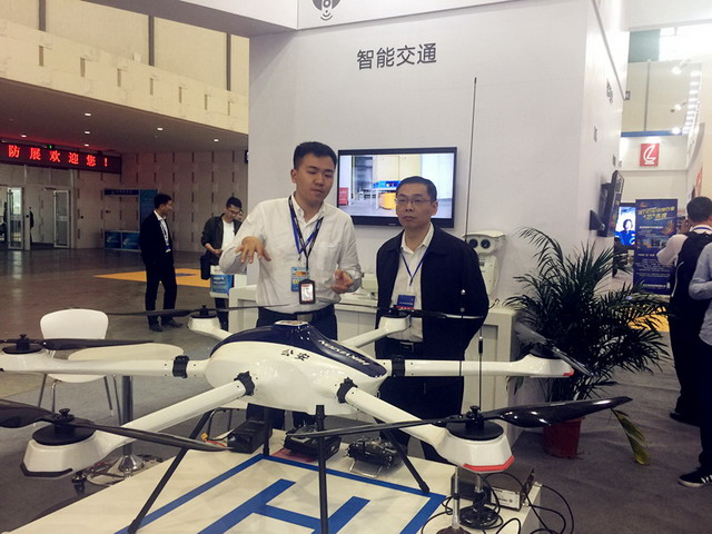 薛宏伟副院长在南京汇展展览服务有限公司总经理常虹的陪同下参观考察了智慧交通、视频监控、防盗报警、智慧小区、人工智能、智能停车、光端传输、门禁控制、会议系统和情景教学虚拟系统等行业领域的产品,并与参展高新企业代表就如何开发适用公安实战需要和公安教育训练需要的产品进行了交流。
