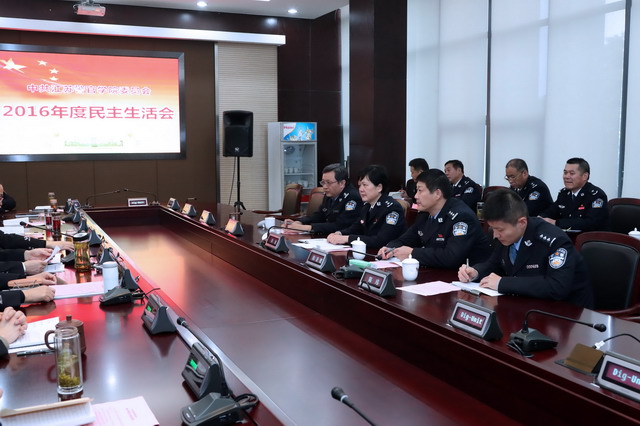 1月17日上午,根据上级机关统一部署,学院党委召开2016年度专题民主生活会。受省委组织部“两学一做”协调小组第四督导组委托,省公安厅副巡视员、机关党委副书记陶旭,实训办副主任韩秉建,机关党委副书记胡安勇一行到会指导。省公安厅党委委员、学院党委书记尚建荣主持会议,学院党委副书记、院长张兰青,学院党委副书记张霞,学院党委委员、副院长宋践、封野、殷竹钧、薛宏伟,学院党委委员、纪委书记朱琨参加会议。巡视员赵远、张健,副巡视员,学院政治部、人事处、组宣处、办公室、纪委、审计室等部门负责人列席会议。