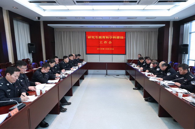 会议听取了研究生部关于公安学科硕士学位授权单位申报条件分析和省重点建设学科建设情况的汇报;人事处、教务处、科研处等职能部门负责人及硕士生导师代表围绕硕士学位授权单位申报条件交流了下一步工作计划;法律系、刑技系、公安管理系等部门负责人及学科带头人就省重点学科建设交流了设想和建议。