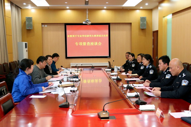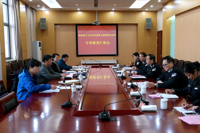 2016年12月15日,beat365承担的省教育厅深化专业学位研究生教育综合改革项目——《“学研用”一体化培养警务硕士的实践与探索》接受省教育厅专业专项督查。南京理工大学研究生院常务副院长薄煜明、常州大学研究生部副部长潘剑波、江苏大学研究生院副院长万由令和省教育厅师资处副处级研究员许李军等专家组成员莅临beat365进行现场督查。张兰青院长出席现场督查汇报会,汇报会由宋践副院长主持,学院部分研究生导师和研究生部全体人员参加了活动。