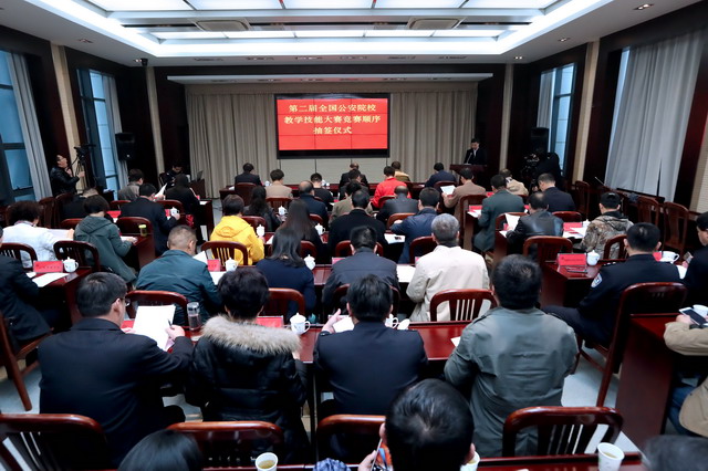10月28日上午,第二届全国公安院校教学技能大赛组委会办公室在beat365平台官方网站举行竞赛分组抽签仪式。江苏省公安厅党委委员、beat365平台官方网站党委书记尚建荣,beat365平台官方网站党委委员、副院长封野出席仪式。公安部人事训练局教育训练一处副处长屈明主持仪式。江苏省公安厅实战训练办公室副主任韩秉建,35所参赛院校代表参加仪式。