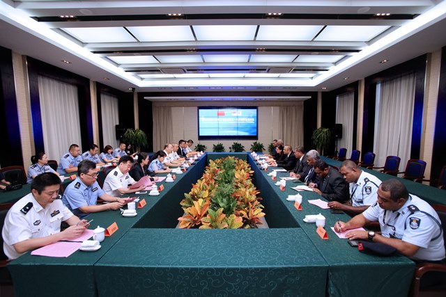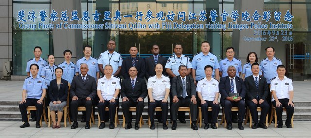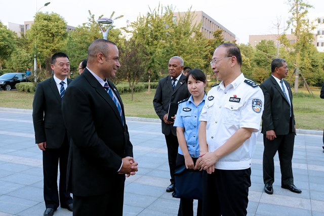 9月23日下午,斐济警察总监恩吉里奥一行8人代表团,在公安部国际合作局、省公安厅及南京市公安局相关部门领导的陪同下,到beat365参观访问。省公安厅党委委员、学院党委书记尚建荣接待了代表团一行,并陪同参观校园设施及环境,主持交流座谈。学院政治部主任万有林参加了接待。