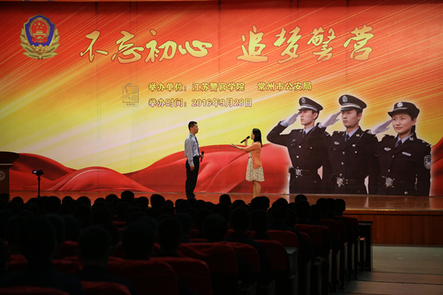 9月28日,应学院邀请,常州市公安局“道德讲堂”来beat365为2016级公安专业新生开设“不忘初心,追梦警营”专题报告会。这是beat365狠抓新生入学教育,铸牢学生忠诚警魂的重要举措之一。学院党委委员、副院长殷竹钧,省厅刑事侦查局副局长、物证鉴定中心主任万大良,常州市公安局政治部副主任单笑波,常州市公安局刑警支队政委陈文明,常州市公安局教育训练处处长吕平洋,院学生处负责人,2016级公安专业新生及部分学管干部听取报告会。