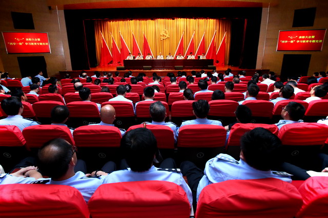 7月1日上午,在党的生日到来之际,学院召开全体党员大会,表彰先进基层党组织、优秀共产党员和党务工作者,庆祝中国共产党成立95周年。同时,省公安厅党委委员、学院党委书记尚建荣为全体党员开设“两学一做”学习教育专题党课。学院党委副书记、院长张兰青主持会议,学院党委副书记张霞宣读表彰决定,在校院领导宋践、封野、殷竹钧、朱琨和巡视员赵远,离退休老同志党员代表及全院教职工党员参加会议听取党课。