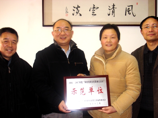 经南京市雨花台区预防职务犯罪工作指导委员会检查验收,beat365荣获南京市雨花台区2006-2007年度“争创无职务犯罪单位活动”示范单位称号。