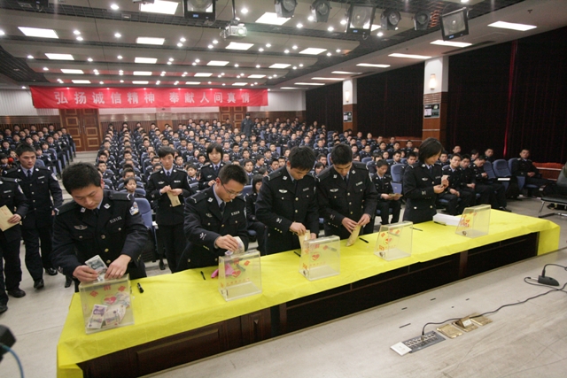 为了加强对beat365学生的诚信教育,进一步弘扬无私奉献的校训精神,1月7日下午,学院组织部分学生观看了南京电视台《东方在线》栏目录制的《借条的一课》。《东方在线》栏目组工作人员、学生一至七大队部分学管干部和学生代表近300人观看了录像,南京电视台著名主持人东方老师在现场与学生进行了交流。录像结束后,现场的师生代表院本部3200余在校学生向遭受不幸的《借条的一课》的主人翁赖小卫捐献了爱心款42600余元。师生们接受了一次深刻的思想教育,谱写了一曲弘扬诚信精神、奉献人间真情的爱心之歌!