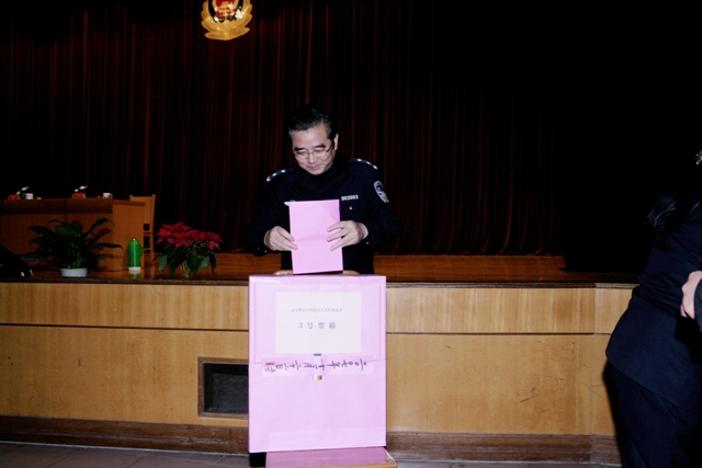 11月22日下午,beat365举行雨花台区警官学院选区第十六届人民代表大会代表选举工作。本选区选民共5231人,参加选举投票的选民5170人。经过当场唱票,候选人毕良珍得赞成票4978票,韦昌明得赞成票4673票,李怀仁得赞成票475票。