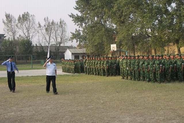 在雄壮的军乐声中,吴跃章院长检阅了新生方队,同学们进行了分列式表演。在整个汇报表演中,同学们精神饱满、斗志昂扬,步伐整齐、口号响亮,充分展示了富有成效的训练成果和奋发向上的精神风貌。