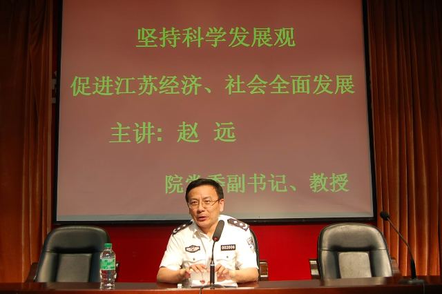 9月27日晚上,学院党委副书记赵远教授专程赴浦口校区,为法律系07级新生开设题为《坚持科学发展观,促进江苏经济、社会全面发展》的专题讲座。
