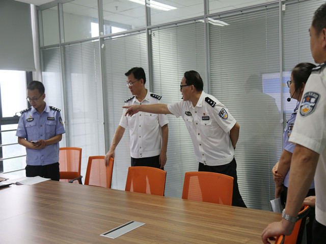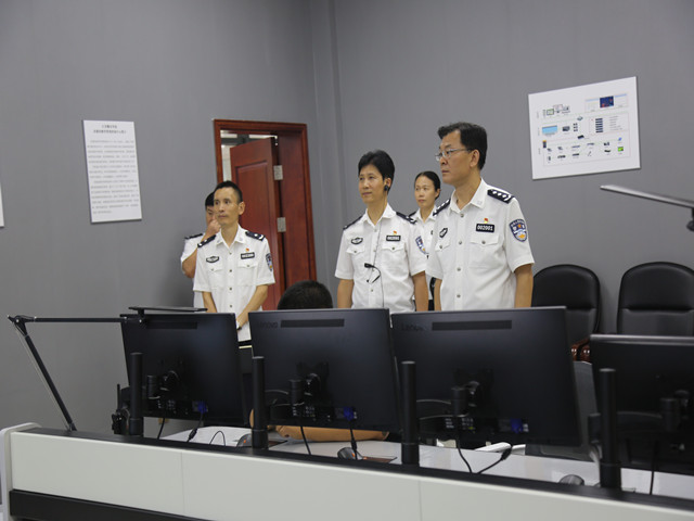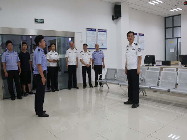 9月13日下午,省公安厅党委委员、学院党委书记夏存喜沿着审核评估专家集体考察浦口校区教学设施线路实地检查指导各考察点准备情况。