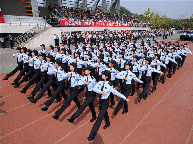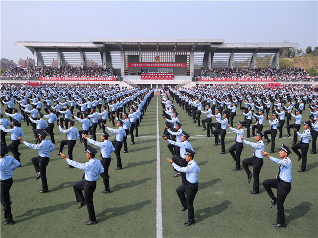 夏存喜书记代表学院领导、教职工向全体新生表示热烈欢迎,向施训教官表示衷心感谢!希望新同学倍加珍惜大学时光,勇做新时代的奋斗者,用从警的热情熔铸忠诚警魂、用青春的奋斗成就更好的自己。要锤炼坚毅品格,认真学习习近平新时代中国特色社会主义思想,坚定理想信念,践行“对党忠诚、服务人民、执法公正、纪律严明”总要求,不断提升自己的政治品格、道德品质和职业品行;要培养求知欲望,尽好本份,打牢基础,拓展眼界,不断涵养知识素质;要训练过硬本领,勤于实践实战,学会理性思考,培养创新思维,不断提高实践能力和创新素质;要保持健康身心,有奉献精神、严明纪律、强健体魄和坚韧意志,更好地担当起维护稳定、保民平安的光荣使命。