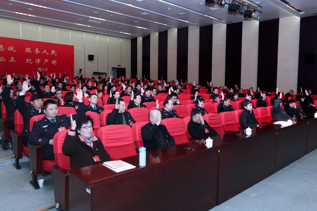 大会号召学院各级党组织、广大共产党员和全院师生员工,要更加紧密地团结在以习近平同志为核心的党中央周围,坚持以习近平新时代中国特色社会主义思想为指导,深入贯彻党的十九大精神,牢固树立“四个意识”,切实增强“四个自信”,坚决做到“两个维护”,在新一届党委领导下,不忘初心、牢记使命,勠力同心、砥砺奋进,不断开创学院事业发展新局面,奋力谱写新时代学院发展新篇章,为“强富美高”新江苏建设和江苏公安事业发展作出新的更大贡献。