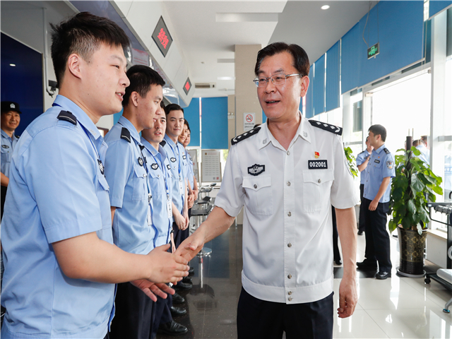 在滨湖新城派出所,夏存喜同志认真察看该所的处警大厅、党建室、所史馆等场所,看望慰问在该所实习的学生,仔细询问他们的学习、工作和生活情况,并与指导教官进行交流。