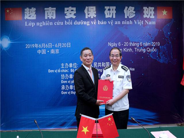结业典礼上,谢寅代表省厅国际合作局对研修班圆满结业表示祝贺,对此次研修取得的成效予以充分肯定,对江苏和越南公安部门今后进一步加强警务交流合作提出了希望,同时代表江苏警方对全体学员及其家人致以美好的祝福。