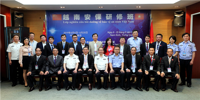 由公安部主办、省公安厅协办、学院承办的越南安保研修班顺利完成既定任务,6月19日下午举行结业典礼。学院党委副书记、院长张兰青参加结业典礼并讲话,省公安厅国际合作局国合支队支队长谢寅,研修班团长、越南公安部经济安全局副局长黎俊出席结业典礼。副院长薛宏伟主持典礼,研修班全体学员,学院外事办、干训部等部门有关人员参加了结业典礼。