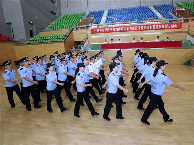 全院干部教师共编成10个区队,院领导分别编入相应区队开展训练。集训内容主要包括警察法规、警察礼仪和队列动作等。21日下午,学院举行警务化集训队列会操暨总结会议。