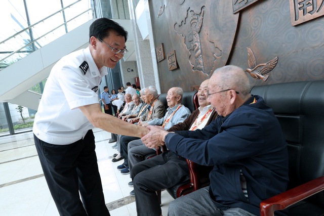 夏存喜同志代表学院党委和全体师生向荣获纪念章的20位离休老同志表示祝贺并致以崇高敬意。他指出,这是党和国家对老同志为建立新中国、祖国建设作出突出贡献的最高褒奖,必将激励全院师生不忘初心、牢记使命,以更加坚定的信心、更加有力的举措推动新时代学院工作创新发展,更好服务“强富美高”新江苏建设和公安工作发展大局。他回顾了近年来学院事业改革发展的新时代布局,介绍了建设“双一流警院”的新目标和取得的新成绩,表示全院师生必将传承好老同志们身上展现出来的优秀品质和奋斗精神,弘扬好老同志们培育出来的优良校风和校训精神,以正在开展的“不忘初心、牢记使命”主题教育为契机,始终坚守为党育人、为公安育才的职责使命,团结一心、锐意进取,努力推动学院各项工作再上新台阶、取得新成效。