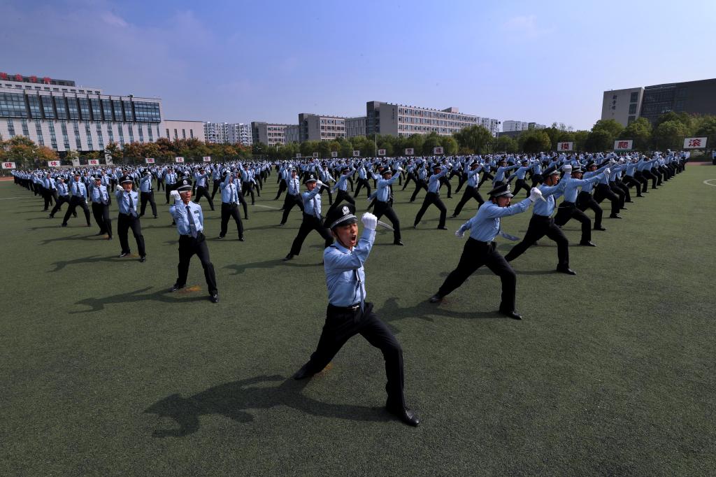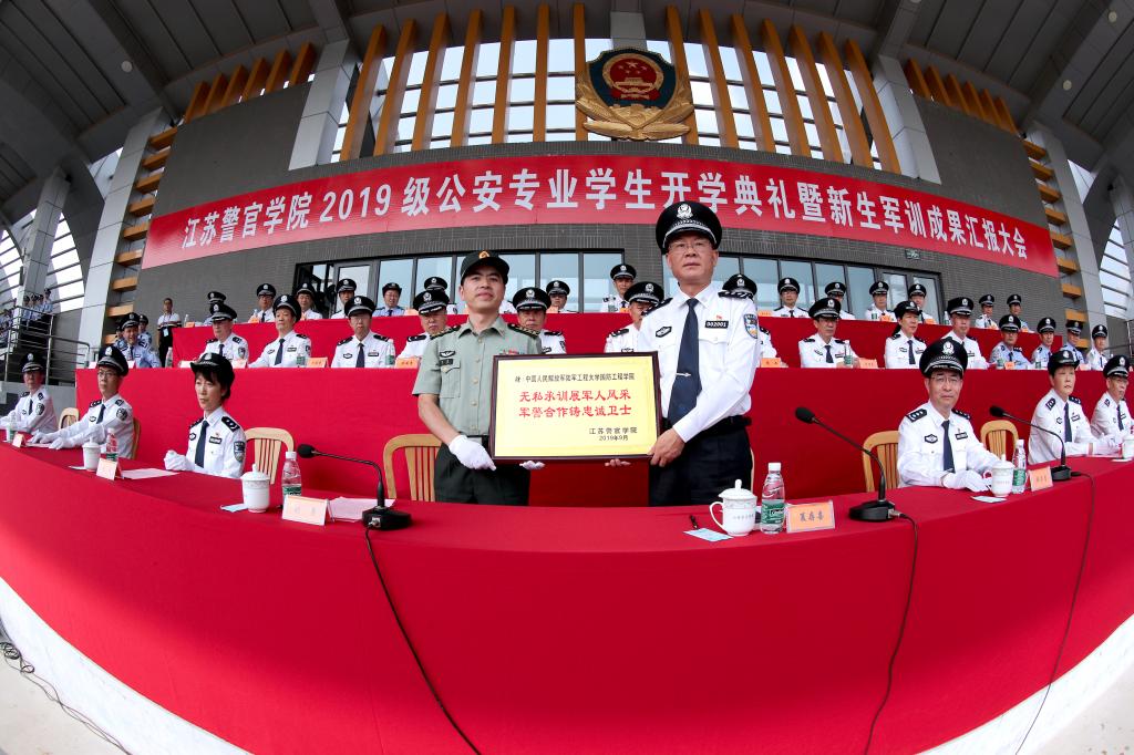 驻训部队领导、教师代表焦海博、在校生代表蔡梦涛、新生代表张颢严等分别在大会上发言,2019级公安专业新生还进行了预备警察集体宣誓。(文/学生处,图/徐兆海)